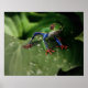 Poster é mostrado com uma impressão fotográfica de um sapo colorido em uma planta. Personalize este item ou comprar como está. Imagem do stock