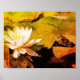 Um lindo sapo-touro admirando uma adorável flor de lírio e lótus, de água branca, entre os lilypads. Fotografia natural de Susan com efeito abstrato grunge.