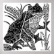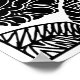 Um sapo em forma geométrica com um padrão de abstrato floral em preto e branco.
