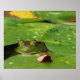 Este poster apresenta um sapo verde que aparece no fotógrafo de baixo de suas almofadas de lírio. Acabou de parar de chover. O Sol reflete-se nas gotículas de água. O tamanho de algumas folhas caídas demonstra como esta pequena cara é pequena.