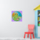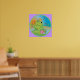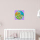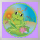 O príncipe sapo verde com coroa e varinha, é tão feliz quanto pode estar sentado no seu leito rodeado por libélulas. Projetado em cores brilhantes para crianças ou bebês.