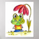 Esta é uma pintura mestiça original de um sapo branco verde sentado sob uma flor vermelha.