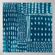 Sashiko Stitches III de Chariklia Zarris. Possui linhas e formas contra um fundo azul contrastante.