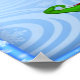 Poster/Impressão (24" x 18") apresenta um fundo azul claro com espirais e flocos de neve, um Elf de Papais noeis Feliz vestindo vermelho e verde, segurando uma bengala doce colorida. Texto riscado vermelho estilizado é Saudações da Estação. Condecoração perfeita de Natal para qualquer quarto em sua casa ou escritório. Este design foi criado usando o original artwork©delightful-doodles.com (http://delightful-doodles.com/)
