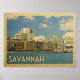 Poster de viagens vintage Savannah com uma vista de horizonte urbano expansiva. Para os presentes de Savannah, esta impressão de arte faz a lembrança ou lembrança perfeita.