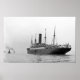 Esta é uma imagem maravilhosamente clara deste Cunarder. Olhe cuidadosamente o arco dela e você pode ver uma escuna com uma vela levantada.