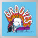 Veja Schroeder tocando seu piano com a palavra "Grooves" em cores repetidas acima.