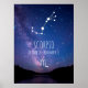 Nosso poster de sinal de nascimento Scorpio é o presente perfeito para qualquer um que é inspirado pela astrologia e pela nova era mística decor de casa. Com um belo cenário escuro estrelado, a constelação de Scorpio se senta acima do texto e do símbolo zodiaco. O texto do horóscopo pode ser facilmente personalizado e todos os elementos podem ser redimensionados, recoloridos ou deslocados - basta tocar para personalizar ainda mais.