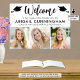Bem-vindos convidados com este moderno sinal de boas-vindas na sua escolha de cores com 3 imagens, um moderno título de tipografia manuscrita WELCOME acentuado com bonés de formatura e personalizado com seu texto personalizado, nome do formando, ano escolar e de aula ou outro texto personalizado (mostrado a preto em branco). Faça alterações de cor no EDIT. OPÇÕES: O exemplo é mostrado em um tamanho de 24 x 18 pol em Papel de Valor (Matte); outros tamanhos de impressão padrão e personalizados, qualidade e enquadramento de papel, arquivo de Download Digital para impressão local ou transferência do design para um conselho de espuma, banner, tapeçaria ou outras opções de produto estão disponíveis na página de pedido. DICA DE REDIMENSIONAMENTO: Escolha Tamanho Personalizado para bordas pares alterando a altura e a largura proporcionalmente após clicar no ícone UNLOCK (parece um link de cadeia). ASSISTÊNCIA: para obter ajuda com a modificação ou personalização do design, alteração de cor, redimensionamento ou transferência do design para outro produto, entre em contato com o designer ANTES DE ENCOMENDAR através da guia MENSAGEM de Bate-papo Zazzle abaixo ou envie um email para makeitaboutyoustore@gmail.com.