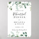 Este guião de boas-vindas do janto de ensaio de folhagem verde é perfeito para um ensaio de casamento moderno. O design apresenta galhos e folhas botânicas elegantes e desenhadas a aquarela, desenhadas à mão, em belos buquês e padrões geométricos.