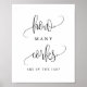 Quantas rolhas estão no pote? Adicione um jogo divertido ao seu evento com este sinal de festa personalizável. Ele apresenta uma escrita preta e uma simples tipografia. Este sinal de beijos é perfeito para chás de fraldas, chás de panela, chás de casamento e outros eventos.