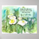 Religious home decor featuring a scripture from the Bible book of Song of Solomon 4:16 "Awake, O north wind..." and decorated with a garden of white poppy flowers with buds and leaves hand painted with watercolor in shades of wintery blues and greens.