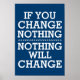 A tipografia motivacional cita poster com texto 'Se você não mudar nada, nada mudará'. O texto é de cor branca sobre fundo azul. Você pode alterar o estilo da fonte, o tamanho e a cor do plano de fundo se quiser.