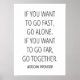 Se você quer ir rápido, vá sozinho. Se você quer ir longe, vá junto - Proverbo Africano Inspiracional Isto não significa que devemos sempre ir sozinhos ou juntos. Algumas coisas podem ser melhor feitas sozinhas, mas para outras...devemos ficar juntos!