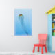 Uma pintura aquosa de uma água-viva, com um topo colorido, no oceano grande, aberto, azul. Copyright ©2017 Kimberly J Tilley.