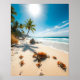 Poster Sea Turtle & Crabs on Tropical Beach – Serene Ocea