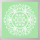 Esta mandala branca senta-se sobre um fundo verde macio. As cores são serenas e criativas. Parte da Coleção Rosenn Mandala.