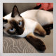 Poster em uma ilustração de um belo ponto de foca Gato siamês que está deitado em um sofá, renderizado como um retrato digital de efeito de aquarela
