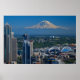 Belo Poster que mostra uma fotografia de Seattle com o Monte Rainier ao fundo.