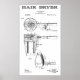 Arte Patente de um dos primeiros SECADORES DE CABELO de 1911. Em um fundo branco com uma elegante borda preta de pinline. Do Inventor: A invenção diz respeito aos secadores de cabelo e, mais particularmente, ao tipo de dispositivos que inclui um aquecedor e um ventilador para forçar uma explosão de ar quente através do aquecedor e que é capaz de manipulação manual, para que uma senhora possa manusear convenientemente o aparelho. As designs de invenção para fornecer um melhor secador de cabelo desse tipo, simples "em construção", bem adaptado para manipulação manual para direcionar o ar desejado para as diferentes partes de uma cabeça de enguias. A invenção também design para fornecer um dispositivo aprimorado desse tipo que permita desconectar ou soltar facilmente o aquecedor, de modo que, quando se deseja secar o cabelo por meio de uma corrente de ar legal, o aquecedor possa ser removido e a ventoinha operada manualmente sem o aquecedor.
