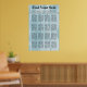 Este é um poster elegante com um padrão de seda azul-clara e pérolas brancas. O texto "Por favor, encontre o seu lugar" é uma inscrição à mão com cores brancas e douradas. Há espaço suficiente para mais de 100 convidados. Você pode excluir as mesas de que não precisa e redimensionar a fonte de cada mesa para ajustar seu lugar no poster. Ou simplesmente mover-se pelo bloco de mesas.