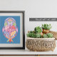 Esta imagem apresenta um desenho abstrato com uma borboleta central, cercada por padrões geométricos e elementos florais vibrantes. A mistura harmoniosa de formas e cores cria uma experiência visual cativante, mostrando uma fusão do estilo artístico moderno e dos motivos inspirados na natureza.