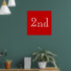Um simples design vermelho e branco, que diz 'segundo' em uma bela na moda.