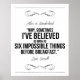 Poster "Seis coisas impossíveis" Alice no País das Maravi