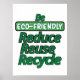 Design para encorajar as pessoas a serem amigas do ambiente e reduzir, reutilizar e reciclar.