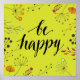 Citação inspiradora - seja feliz - escrita à mão no estilo caligrafia moderno com flores silvestres cor-de-rosa e amarelas pintadas em aquarela. Design de placa vetorial. | Bigstock® - Todos os direitos reservados.