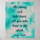 Um poster adorável, "Seja forte e tenha coração, todos vocês que esperam no Senhor", este item tem um adorável fundo azul e rosa. Excelente por pendurar na sua parede, peça a sua hoje!