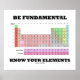 Mostre o seu lado físico da química com uma dose de atitude de Mesa Periódica dos Elementos com esta poster com o ditado que fará com que os outros façam uma dupla tomada: "Seja fundamental conheça seus elementos". Química memorável dizendo poster para professores de química, graduadores de química e químicos! Para todos os fãs da Mesa periódica!