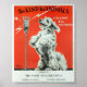 Poster vintage de cão no microfone implorando humanos para serem gentis com os animais.