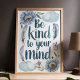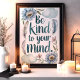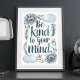 Poster Seja gentil com sua mente, Floral e Arte da Pena