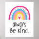 Poster Seja sempre gentil e colorido, Boho Arco-Íris