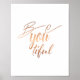 Você é bonita por ser você mesmo. Seja Tieza! Inscrição de script em cobre. Design da Bohemian Girl.