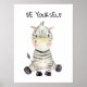 Poster Seja Você Mesmo Aquarela Zebra Bebê