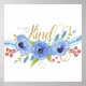 O poster tem flores, folhas, samambaias e bagas com efeito de aquarela, e a citação "Seja humilde e gentil". A palavra "Tipo" tem um efeito de brilho.