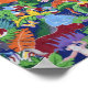 Arte digital colorida com vários animais da selva em várias cores adequadas para crianças.