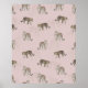 Experimente a beleza poderosa do leopardo, Panthera pardus de uma forma refinada e única com esta delicada design pintada à mão. Os leopardos de ouro puxados à mão se destacam contra um fundo cor-de-rosa pastel, acrescentando sofisticação a qualquer cenário.