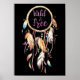 Um poster com fundo preto e nele um grande Dream Catcher com Wild & Free escrito no centro do aro. .