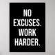 Poster Sem desculpas, trabalhe mais duro - motivacional