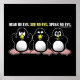 Não Ouça Mau, Não Veja Mau, Não Fale Sem Mau. Design Gráfico de Três Pinguins Sábios.