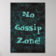 É fofoca te abaixando? Não se preocupe mais, este poster Azul "No Gossip Zone" vai pará-lo nos seus caminhos. Apresentando um espetacular design azul com "No Gossip Zone" escrito em um texto personalizável azul escondido, adquira o seu hoje!