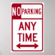 Nenhum sinal de estacionamento em qualquer hora do tipo usado em cidades americanas.