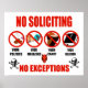 Mantenha as cavalas longe de sua porta com este sinal que deixa claro que sua política, suas revistas, seus doces, e sua religião não são bem-vindos. Com ilustrações apropriadas para cada um e alguns crânios e bósforos com seu amigo devilado. Os adesivos e ímanes são bons a viajar consigo para garantir a sua privacidade.