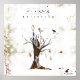 o pedaço inteiro é de diferentes tons e camadas de branco, no meio está uma árvore nua e solteiro com algumas folhas de outono caindo dela, com um pequeno corvo preto empoleirado em um galho solteiro, dá-se a sensação de solidão, mas ao mesmo tempo, esperança.