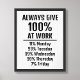 Apresentando uma visão divertida do equilíbrio entre vida profissional e familiar, o poster 'Sempre dê 100%' é a combinação perfeita de motivação e humor. Excelente como presente ou como uma adição divertida ao seu próprio espaço de trabalho. Disponível no impressão e no download instantâneo.