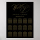 Este moderno gráfico de assentos em preto e ouro apresenta uma elegante tipografia que lê "o Casamento de" com os nomes da noiva e do noivo, juntamente com os nomes no gráfico de assentos para personalizar. Ajustados até 15 mesas. Desenhada por Susan Coffey.
