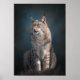 Este animal chamado design apresenta uma pintura de um lince iberiano sentado no chão na natureza.